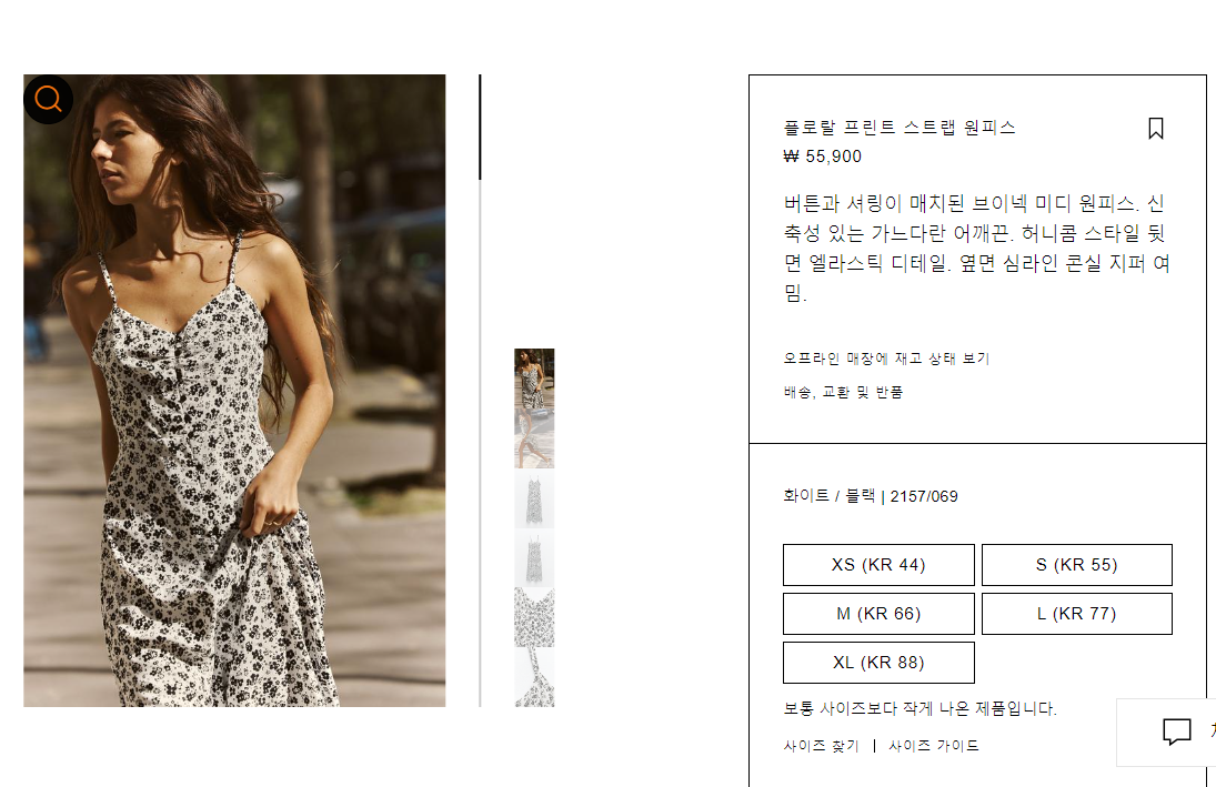 아래 자라 플로랄 프린트 원피스 처럼 조금 핏되며 앞트이 있는게 더 이쁠것 같네요.